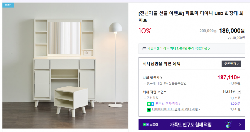 화장대 크기는 950*390*1350 인데 수납 부분과 거울부분이 분리가 되어 일반 suv 정도 차에도 실립니다.